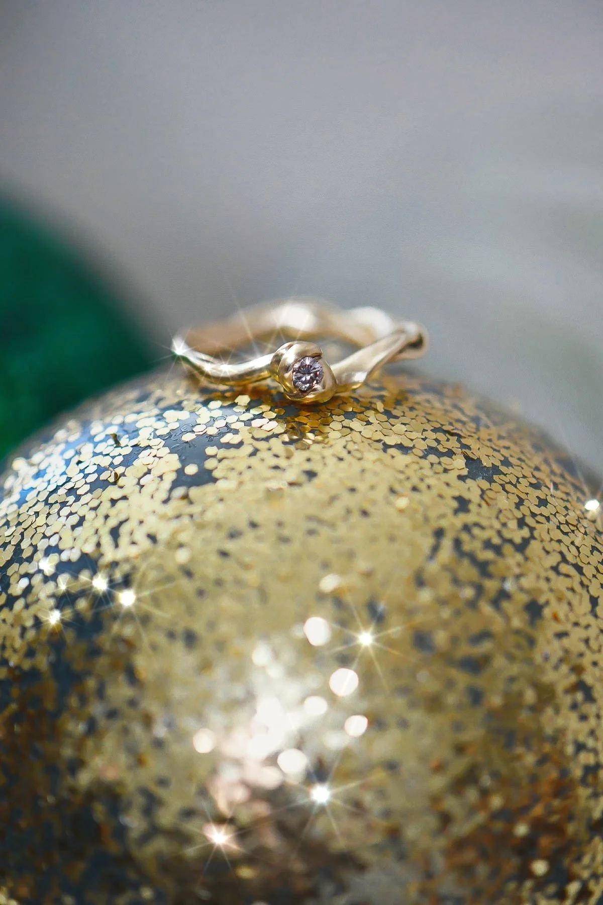 Spiralé No. 3 is a softly sculpted spiral ring, shaped by hand in wax and cast in solid gold. Set with delicate sparkeling champagne diamonds.